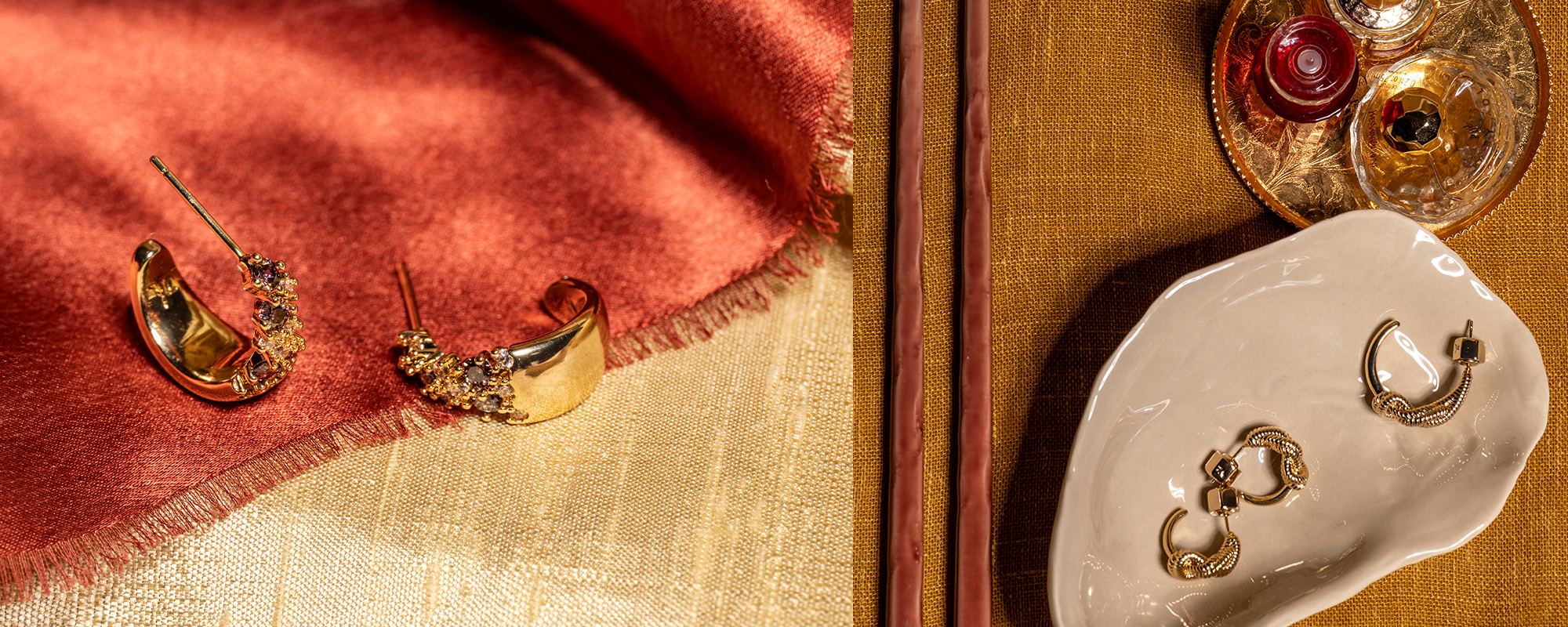 Geometric elements of the art-deco movement with the glitz of cubic zirconia stones. Classic pieces, forever feminine and eternally beautiful.