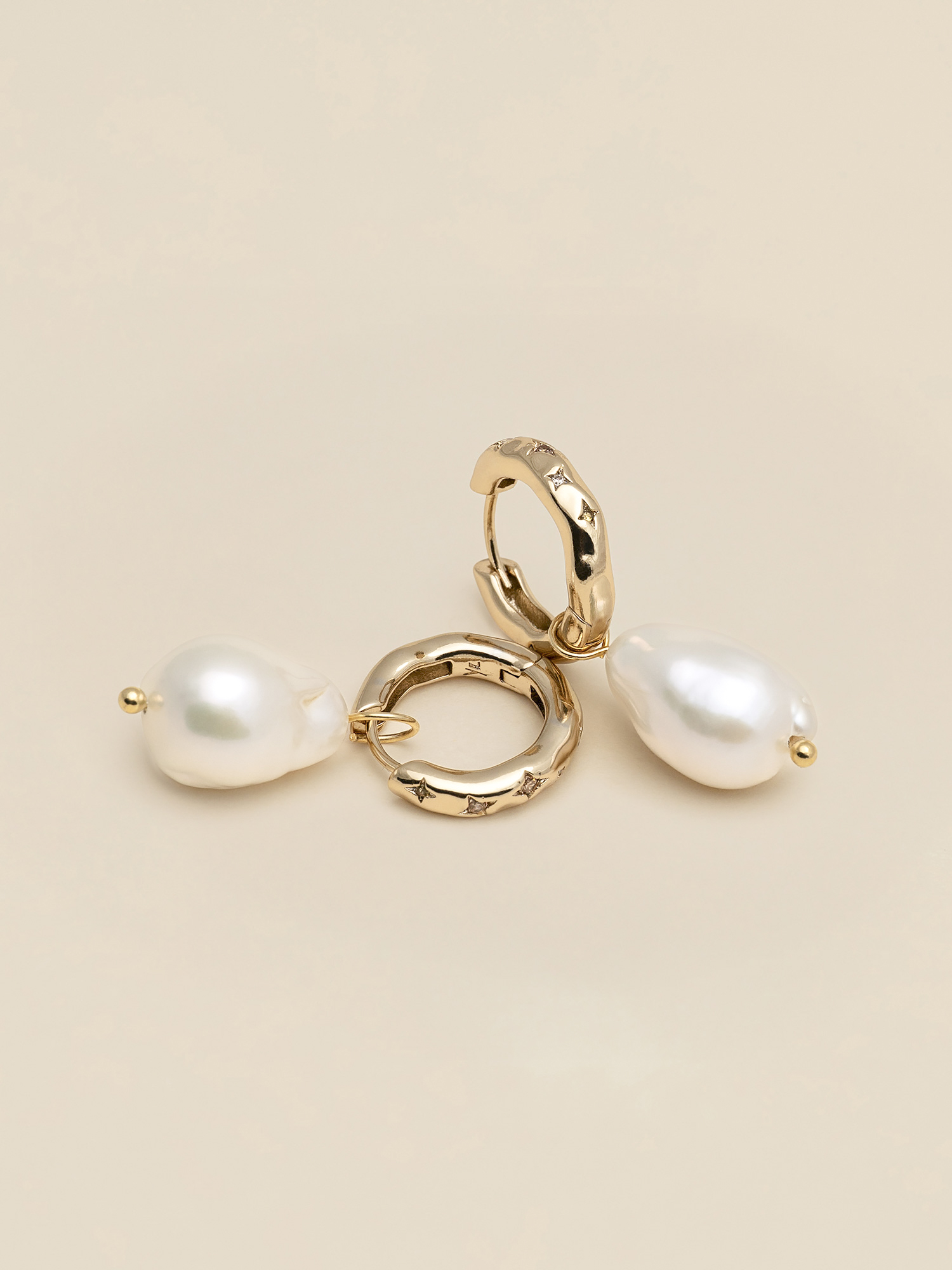 These gold-plated, moulded hoop earrings effortlessly transform, offering you two divine styles. Delicately suspended like a moonlit droplet is a baroque pearl, it is easily detachable for a more simple look that radiates everday sophistication.