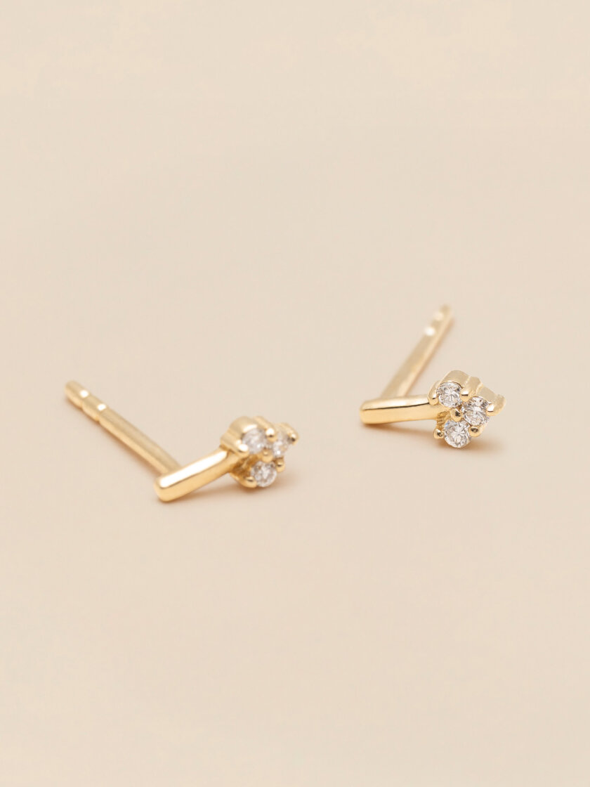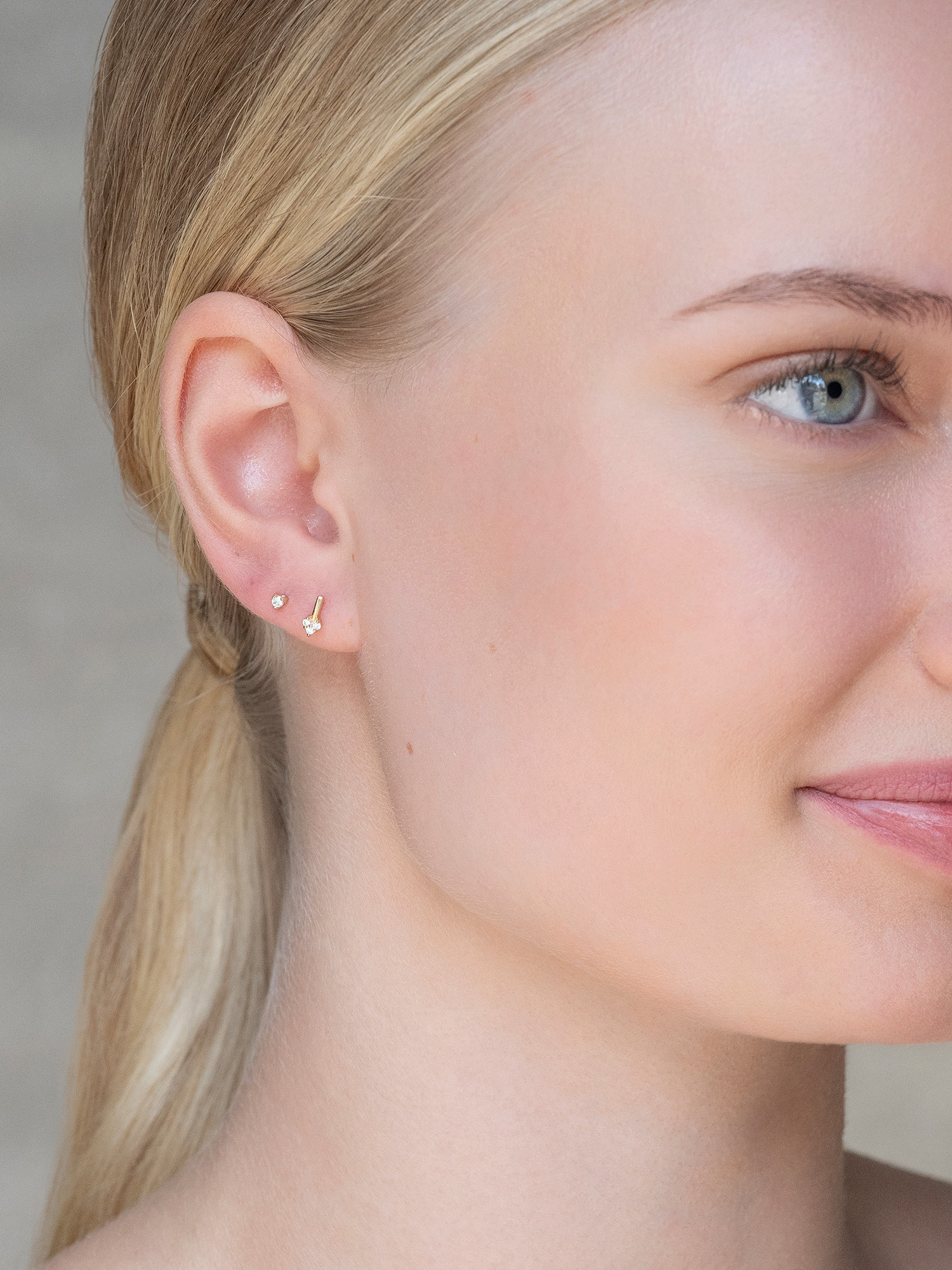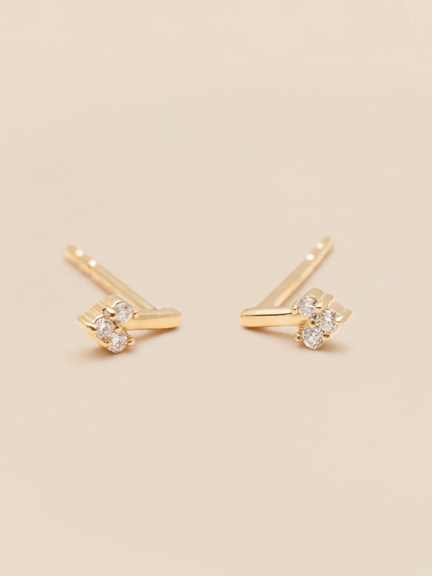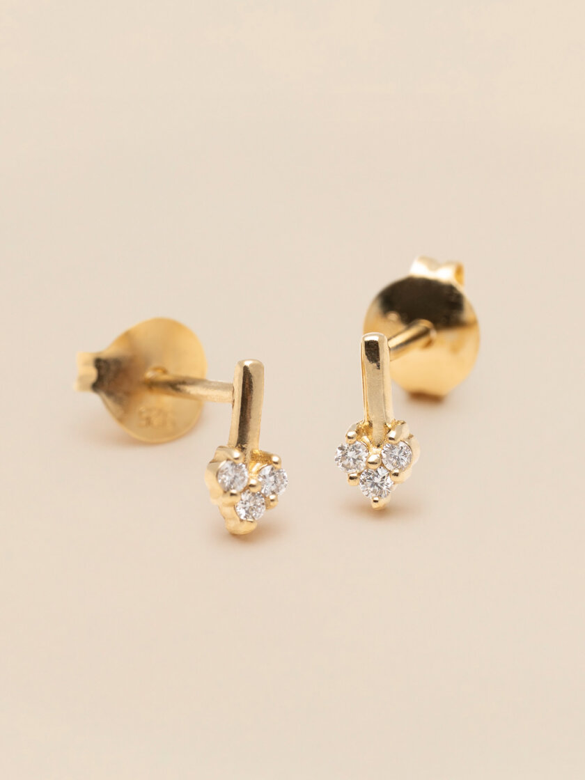 A petite heart stud set with three sparkling diamonds, adding a touch of delicate charm to any look. Ideal for stacking or everyday wear.