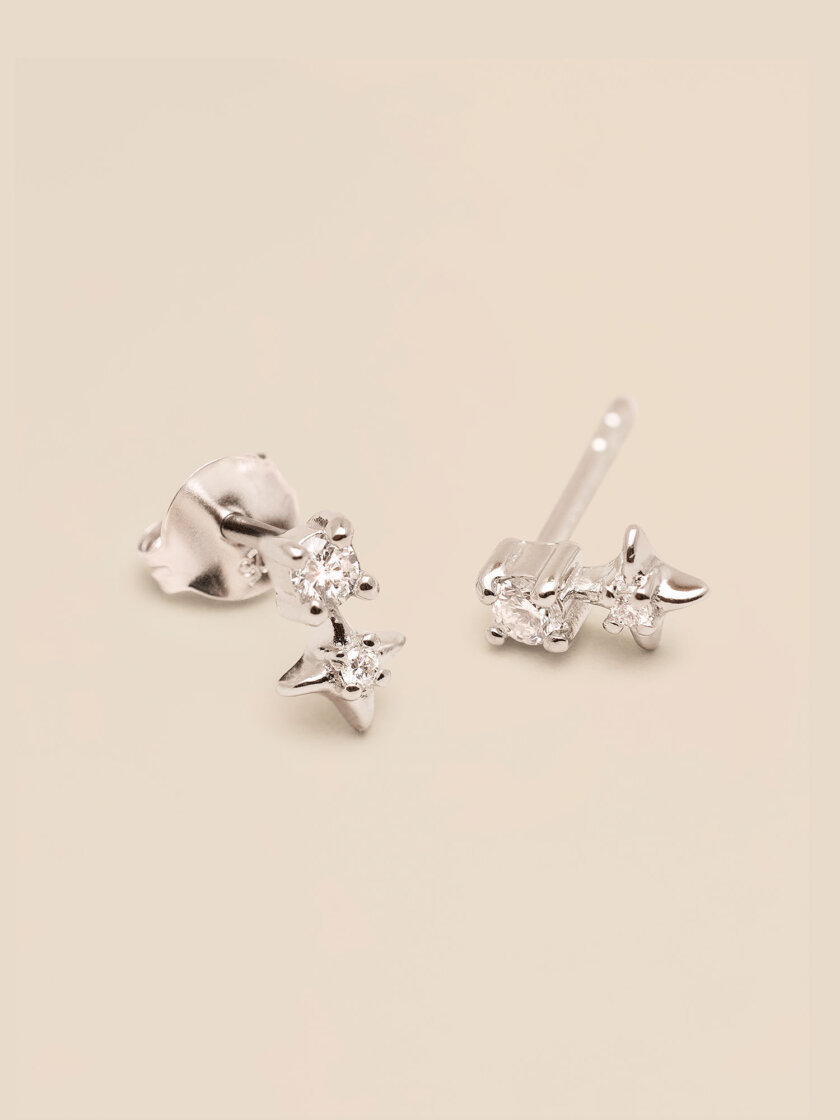 A sparkling diamond stud delicately connected to a charming star, this pair combines playful design with refined sparkle.