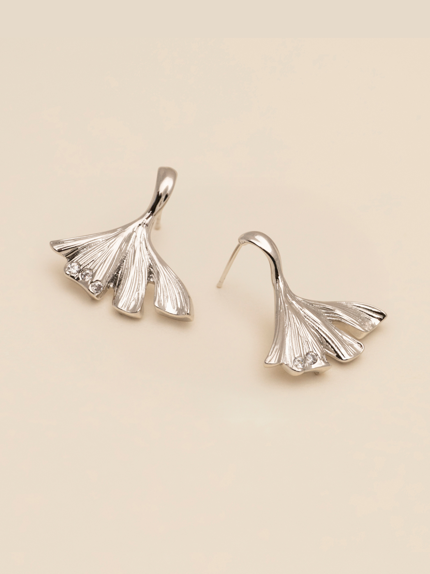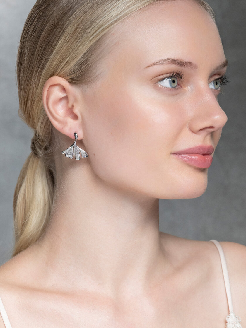 A smaller version of the spring signature earring, Embla leaf. Handmade textured leaves with 3 clear crystals on each earring. Wear it together with our Embla charm or Yves necklaces and bracelets.