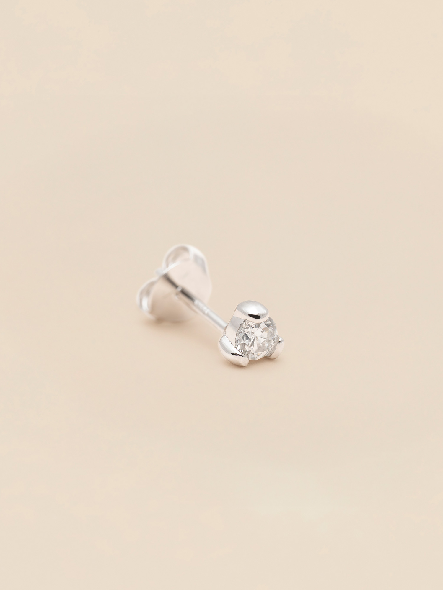 Featuring one sparkling diamond held by three delicate claws, this stud embodies minimalist sophistication and timeless style. Ideal for stacking and everyday wear.